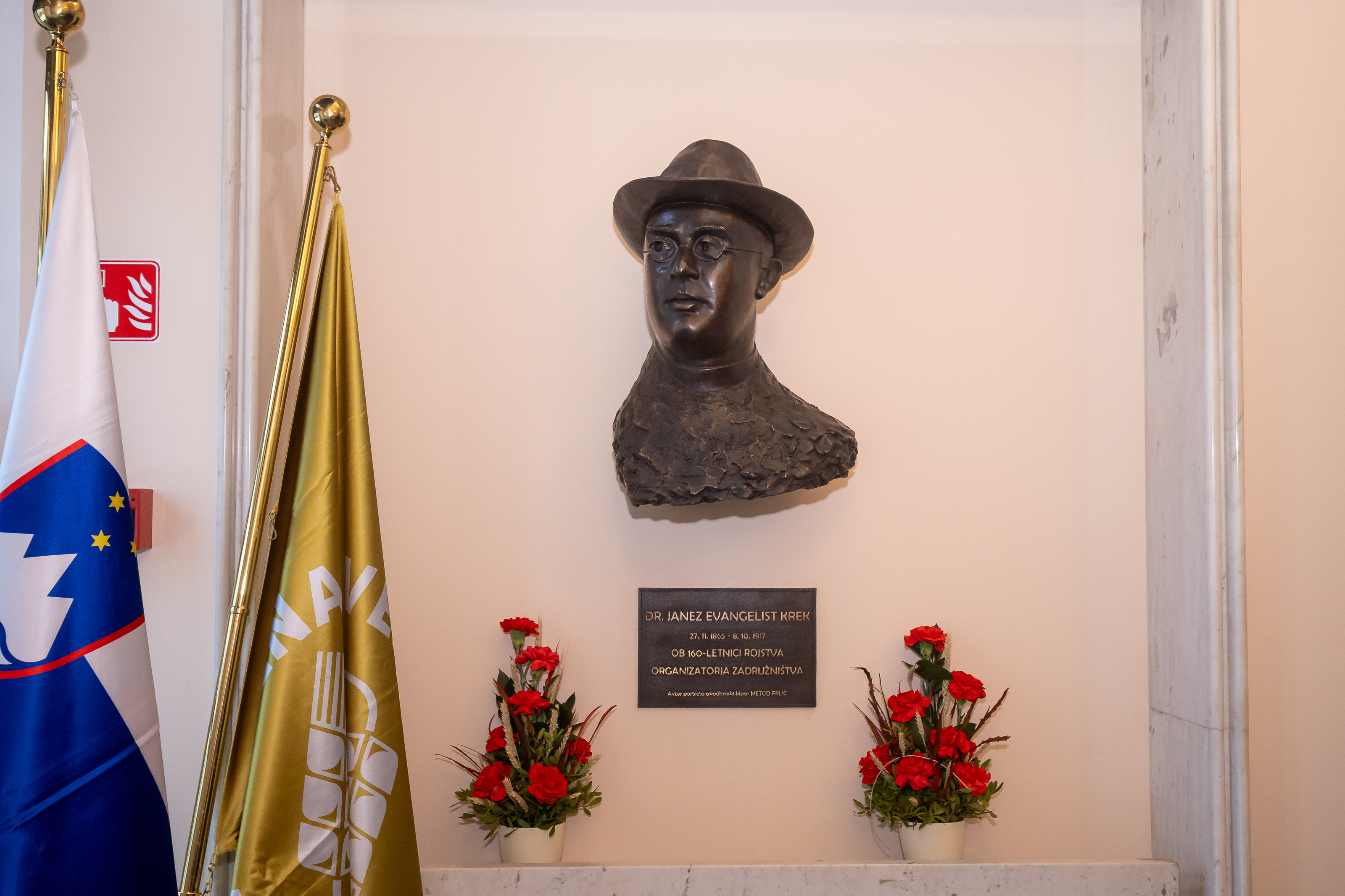 Letos, 27. novembra 2025, smo pri Zadružni zvezi Slovenije obeležili 160-letnico rojstva dr. Janeza Evangelista Kreka s slovesno postavitvijo njegovega kipa, umeščenega v vstopno avlo stavbe ZZS na Miklošičevi 4 v Ljubljani. S tem dejanjem smo se poklonili izjemnemu duhovniku, teologu, sociologu, politiku in pisatelju – človeku, ki je s svojo zavezanostjo ljudem odločilno zaznamoval razvoj zadružništva na Slovenskem.