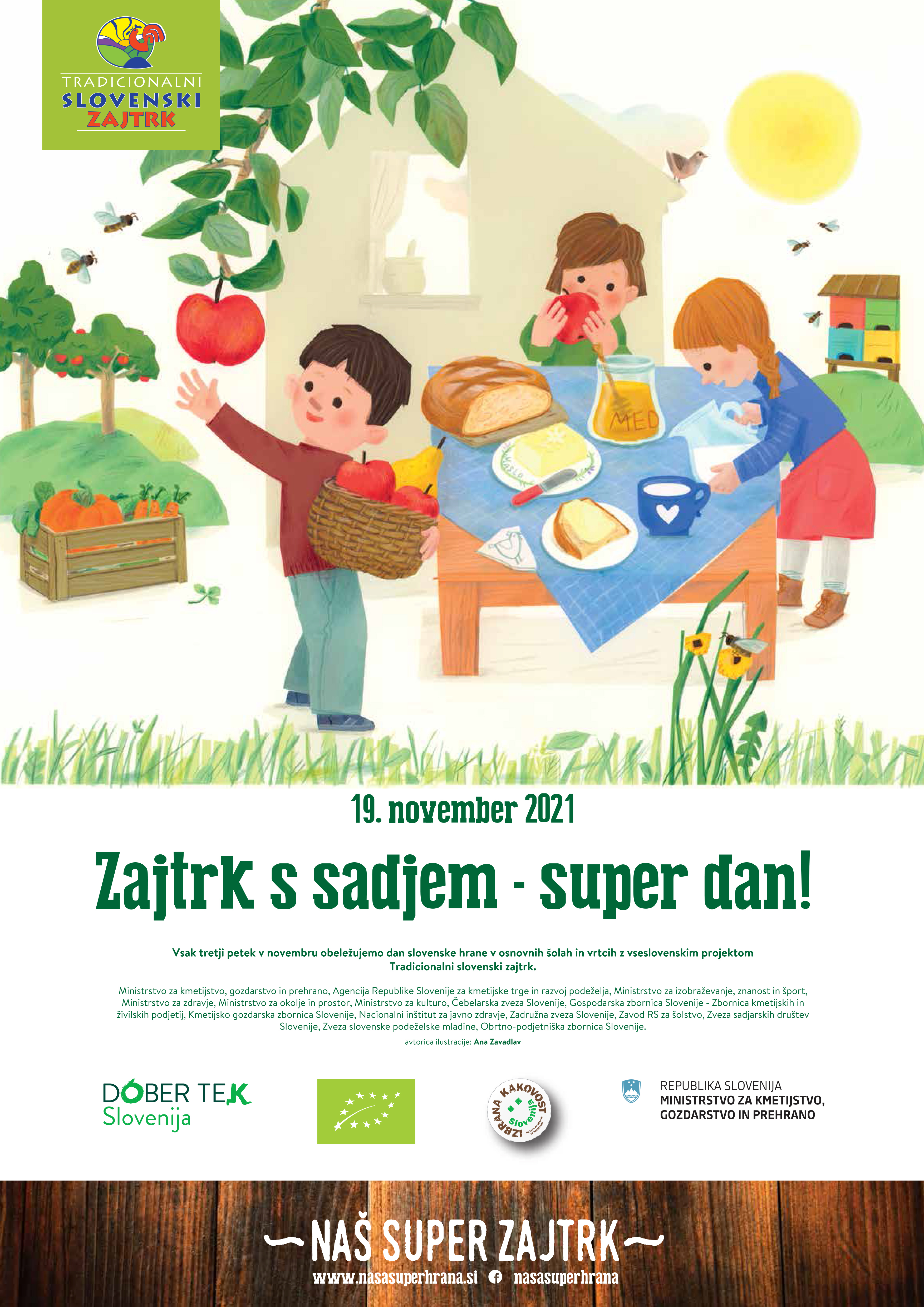 Počasi se približujemo tretjemu petku v novembru (19. november 2021), ko bomo obeležili dan slovenske hrane in ga pod sloganom: »Zajtrk s sadjem – super dan!« v osnovnih šolah ter vrtcih proslavili s projektom Tradicionalni slovenski zajtrk.